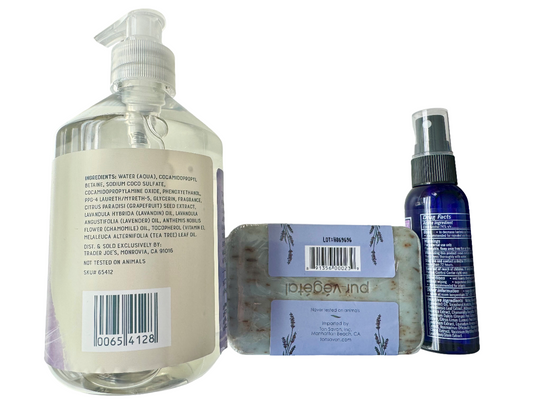 Trader Joe's Lavender Soap and Sanitizer Set (Hand Soap, Bar Soap, Sanitizer Spray)